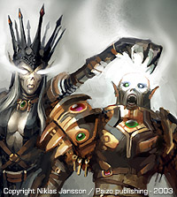 All three of the heroes knew more than a little about the Undead, from various sources, and were quite aware that to physically slay a lich was by no means to destroy one. The spirit of the man Artila had once been was safe, securely drawn back to the magic jar created when he enacted the foul rituals required for cheating death in this way. If a new host corpse were provided for him, Artila could resume his unlife fully. The location of said jar was the closest guarded secret of any lich, for if it were destroyed the lich would be slain forever.