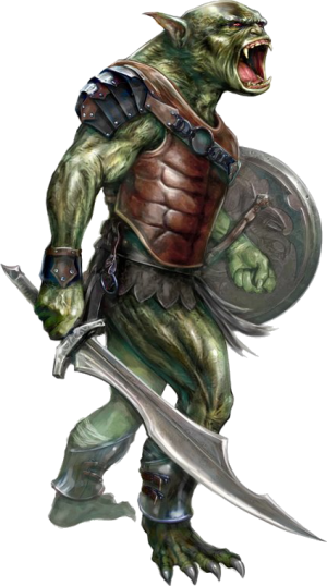 The hobgoblins, as well as being bigger, were far better armoured than the slitheren ratmen, and Caitlin and Krizzen's initial strikes glanced from their armour and shields. Krizzen's opponent had a short sword rather than the more usual scimitar, while Caitlin's had a small shield which looked far better than the normal slightly grubby hobgoblin equipment.