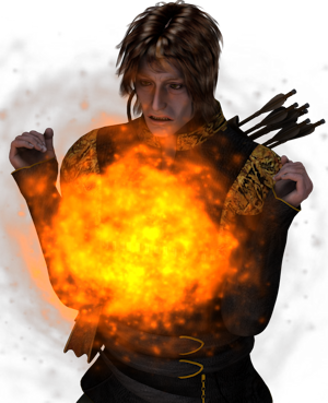 Krizzen shifted Soothslayer into both hands and charged the soldiers defending the dastard knight, shrugging off a spell of some sort that Velran cast at him as he did so. Steel clashed as the giant axe whirled, denting one man's armour but not slowing him appreciably. Behind them, discarded the empty potion bottle and drew his rapier just as the Flaming Sphere caught up with him, scorching him painfully.