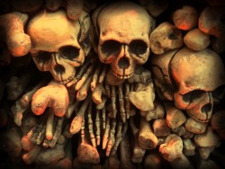 Nobody fancied the look of this, so they quietly backed out and closed the door, before investigating the door at the opposite side of the pit. The layout behind that was identical, but there were no mechanisms. Instead, the far wall of the room was composed entirely of what looked like bones – human bones – packed closely together. They weren't merely separate bones, nor whole skeletons, but limbs – legs, heads – ribs and skulls mixed together. As the companions watched them, the arms started to move, beckoning them forwards.