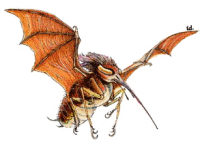 Furry bodies and bat wings whirled around both Caitlin and Yoshin, and each felt daggerlike proboscisis drive home. A hideous sucking sound and sensation followed as the loathsome creatures, clinging tight with their eight legs, drank the living blood from the two adventurers.