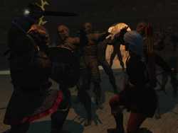 Above, an epic struggle was unfolding. Gorfang and Eloy had exchange blows with four of the mummies they were facing, and had been rocked back by the force of the blows the undead could deliver 'bare-handed'. When Gorfang finally managed to drop one, Eloy hissed "Hold them off!" and backed away out of combat.