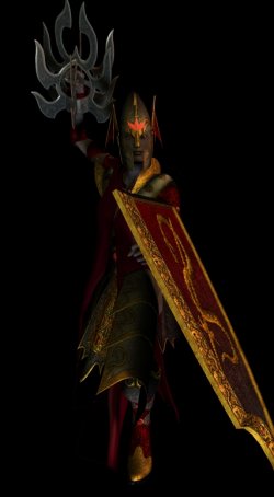 From where he was, he could now see into the room beyond, the one the Fae Mhor had entered from. It was around the size of the four antechambers off the main room behind him, and at the far side was a spiral stair leading up - now utterly blocked by a Blade Barrier. To either side of that was a rearguard of more male Fae Mhor soldiers, and ahead of that four more and four more priestesses. In the centre was a single Fae Mhor female, and to Gorfang's eyes she had High Priestess written all over her. Tall, elegant, arrogant; and yet slightly different to all the other Fae Mhor women he'd ever seen. All had looked young; what for a human would appear to be in their early twenties. This one, while not old, appeared middle-aged, a totally unique thing in Gorfang's experience.