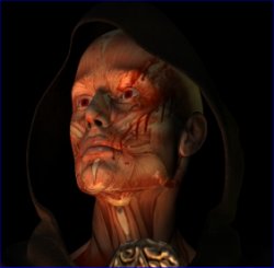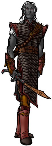 The other was even more alien - he apparently had no skin at all! Flesh, muscles and some bone were exposed, all running with blood that never seemed to stop, or flow onto the floor, or drip free. A massive greatsword - a very unusual weapon for the lightly-built and deft Fae Mhor - stood upright in front of him, one gory hand resting atop the unstained pommel.
