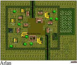 An hour's walking soon stretched the kinks out, and the men were soon marching along through the fields that surrounded Arlan fairly cheerfully. A little later, however, they entered the woodlands, and immediately became more watchful. For an hour, they worked their way through the forest, seeing nothing out of the ordinary. Then, however, something nibbled at the edge of Mehmet's awareness. Easily the most experienced forester among them, he was well-tuned to the natural order of things within woods, and something ... something ... was just a hair not right; to his left somewhere. Casually, he walked a little faster, until he was in the midst of the group, then feigned a stumble. As everyone's attention focussed on him for a moment, he whispered a warning in the lowest of voices, disregarding Nikolos' look of scornful disbelief. Rurik gestured for the soldiers to keep moving, and Percinious moved in close to Mehmet's right. Shielded from view, he quickly worked a Farsee, and swung his augmented vision across the area his friend had indicated. For an instant, right at the edge of his range, he saw two flickers of movement... a largish area of brown (maybe fur? hair?), and a flash of bright purple - and then it was gone. He cast about for a bit longer, but whatever it was was gone.