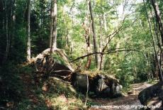 A little later, they reached the scene of Sevlen's death. Despite the heavy rain, there were still traces of blood on the forest floor, and some of the trees around showed signs of damage; a mixture of the sort of wounds caused by a small axe or short sword, and those possibly made by whatever made the wounds that killed Brion Oakapple. Rurik instructed his men to fan out and look for more evidence - tracks preferably.