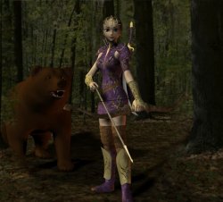 A voice answered him, a musical female voice speaking a language none of the group had ever heard before. The bear stopped attacking and hunkered down, glaring at Mehmet. The voice sounded again, this time speaking the Qhalur language with a very strange accent. "Surrender the blasphemous item, and you will live," it said.
