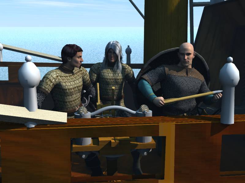 A couple of days later, a dot on the horizon resolved itself into three squat single-masterd clinker-built Cormaran traders, lumbering along towards Neudorn. After a brief debate, the idea of trading with them was abandoned, and the raker moved up towards the formation as her crew wound the ballistæ.