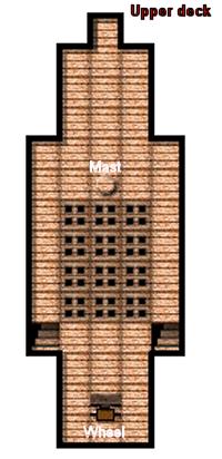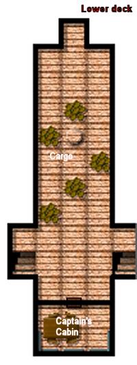 Below, Mehmet had reached the lower deck by one of the companionways set either side about ¾ of the way to the stern. He found most of the lower deck given over to a large hold, stacked with barrels of cargo as well as slung with hammocks for the crew. A few experimental kicks at some of the barrels was rewarded with a heavy sloshing sound; rum with a bit of luck!